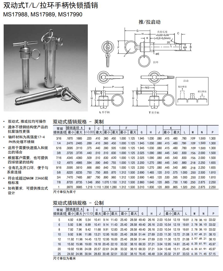 雙動式T/L/拉環(huán)手柄快鎖插銷
