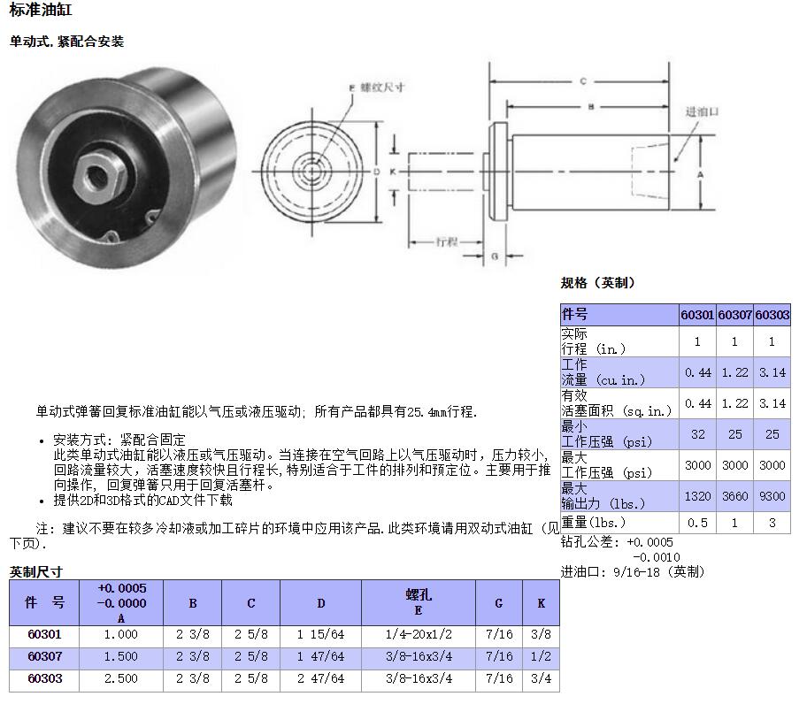 標(biāo)準(zhǔn)油缸-單動(dòng)式,緊配合安裝