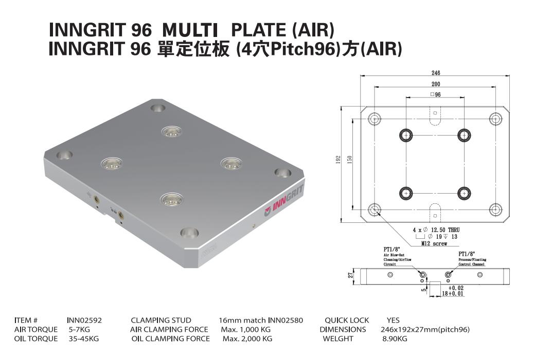 INN02592 單定位板 (4穴Pitch96)方(AIR)