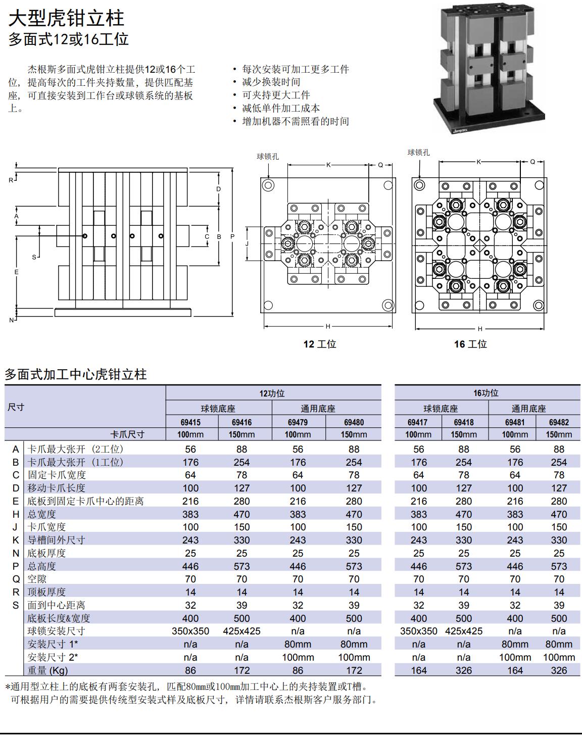 大型虎鉗立柱 多面式12或16工位
