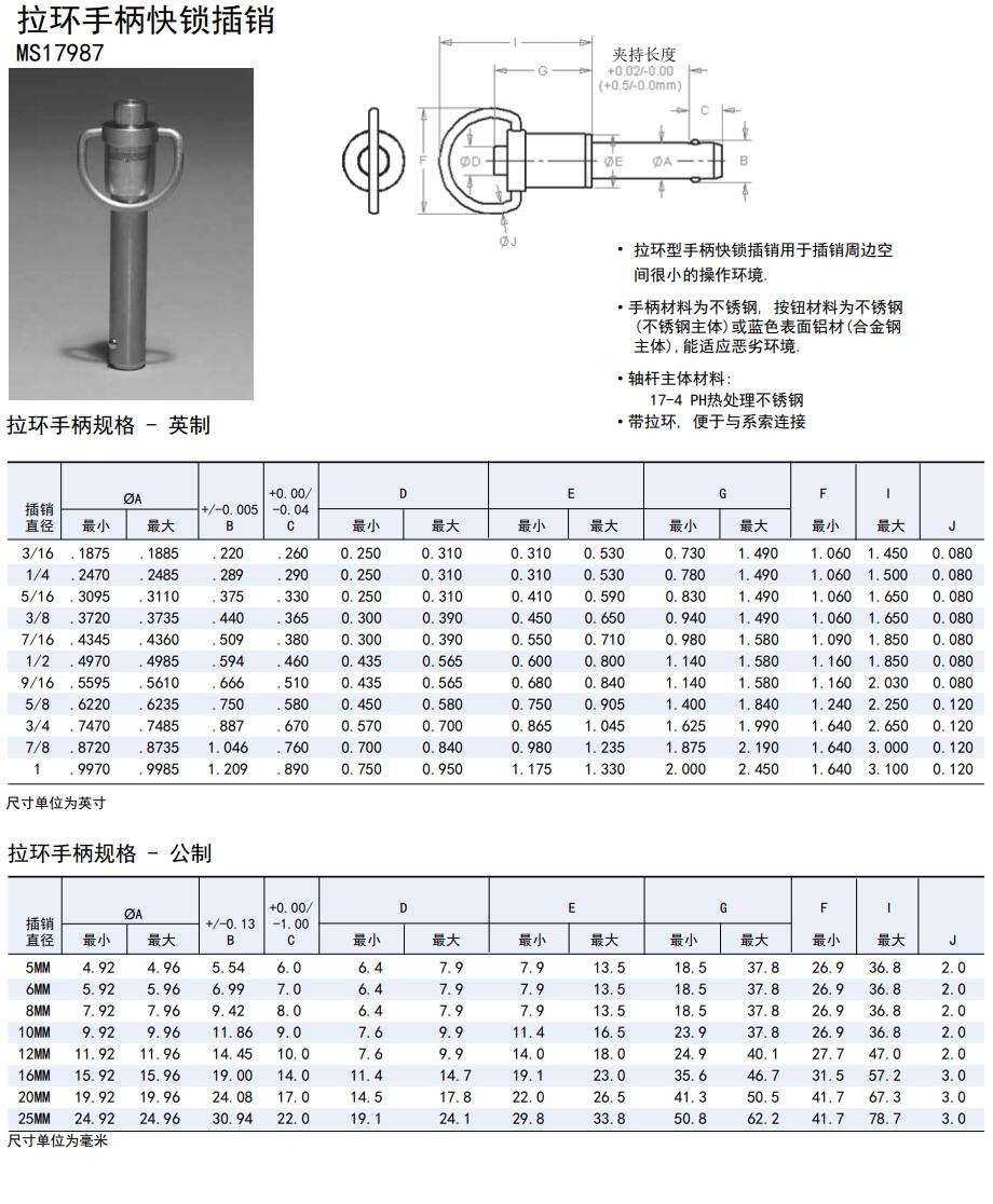拉環(huán)手柄快鎖插銷(xiāo)